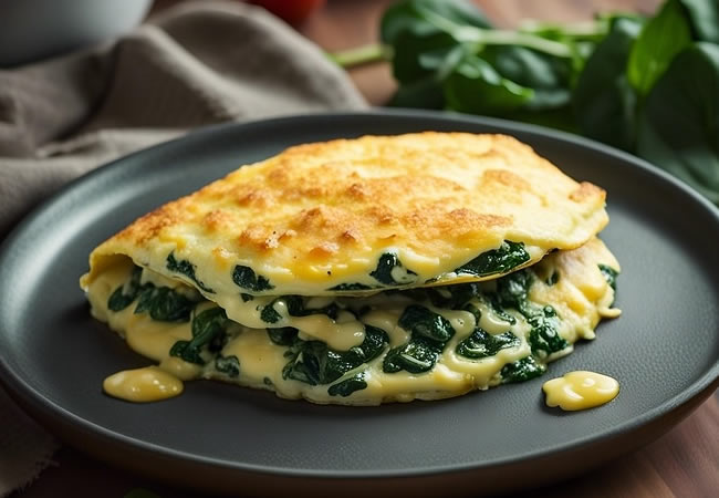 Exemple : Omelette protéine aux épinards et champignons pour un boost énergétique matinal.