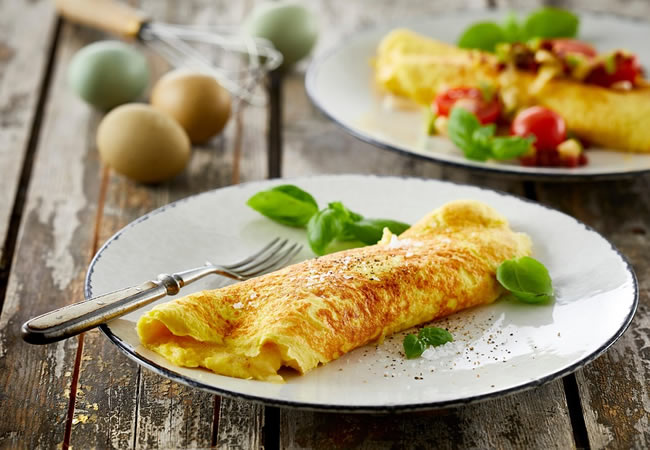 Préparez votre omelette régime le matin pour le plein d'énergie avec quelques légumes frais et un filet d’huile d’olive. Une idée de petit déjeuner simple.